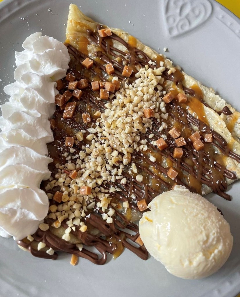 Crepes de la crème offer homemade crepes with a whole range of toppings; you can have the best of both worlds with either a savory or a sweet crepe (some people even have a savory as a main and a sweet for pudding!)