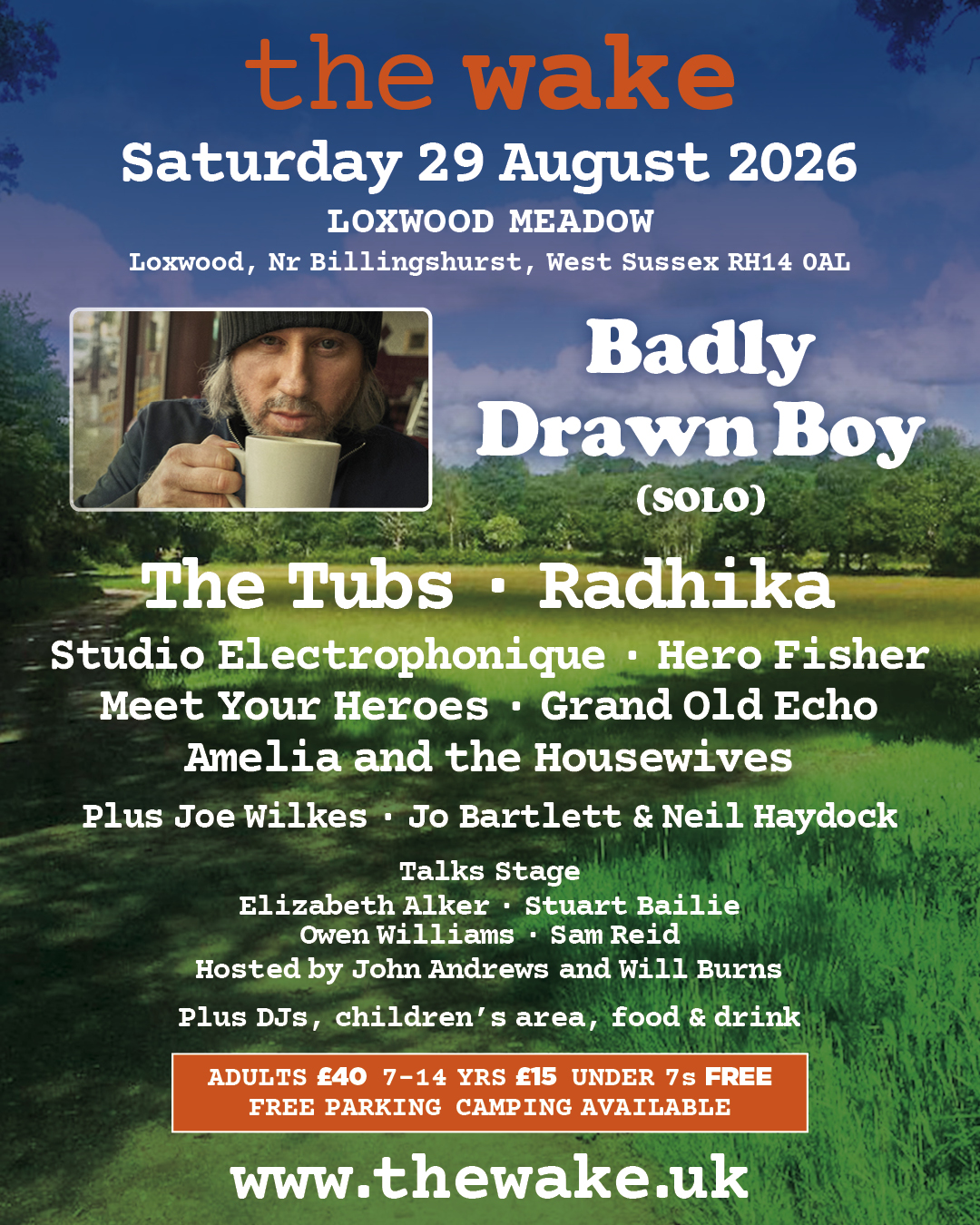 The Wake was set up in 2024 by The Green Man festival founders Jo Bartlett and Danny Hagan. Badly Drawn Boy follows the festival’s previous headliners King Creosote (2025) and Gruff Rhys (2024).